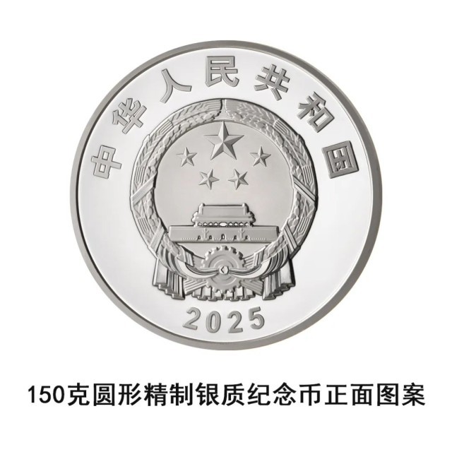 150克圆形银质纪念币为精制币,含纯银150克,直径70毫米,面额50元,成色99.9%,最大发行量5000枚。