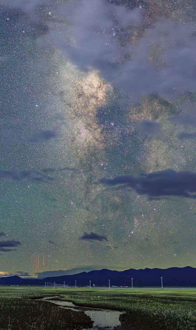 荒野银河与“红色精灵”闪电。刘夙培/摄