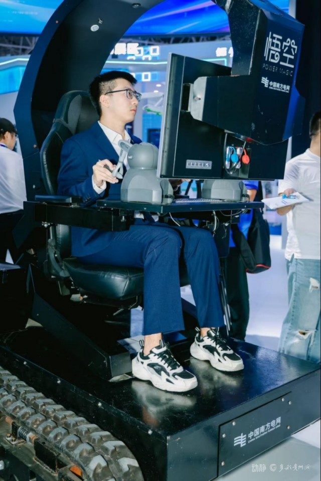 当记者来到南方电网展区,一台“悟空”带电作业机器人吸引了不少游客围观。如何“分身”?这台机器人由机械臂和操作站两部分构成。“悟空”机器人的机械臂可实现15米以上的高空作业。工作人员通过远程操作操作杆,就可以完成带电作业涉及线路拆接引线、飘挂物清理、设备清洗等场景。同时,依托于高精度仿人形设计,“悟空”实现360度无死角作业,快速灵活切换多种作业工具,高效应对不同作业场景。
