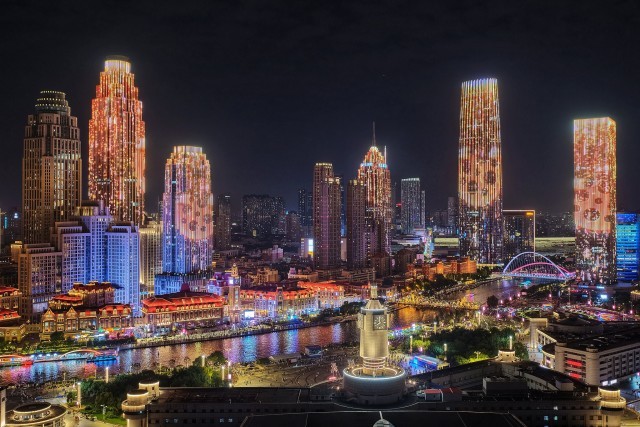 8月23日晚,天津“海河之夜”灯光秀精彩上演。视觉中国供图