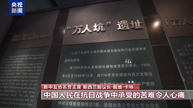 新中友协名誉主席 新西兰前议长 戴维·卡特:我去过南京大屠杀死难者纪念馆,那里看到的东西让我毛骨悚然。中国人民在抗日战争中承受的苦难令人心痛。中国人民坚韧、有决心、保卫了自己的国家,并孕育了新中国。1949年新中国成立,每一个中国人都应为这一成就感到自豪。