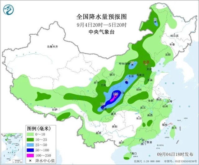 内蒙古东北部、西藏中部和西南部、青海东部和南部、甘肃东部、河北、陕西、山西、河南南部、湖北西部、四川盆地中西部等地部分地区有中到大雨,其中,陕西南部、四川盆地西部和北部等地部分地区有暴雨或大暴雨。