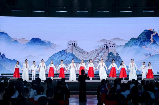 中俄青少年手拉手合唱团演唱《长城谣》。全国青联供图