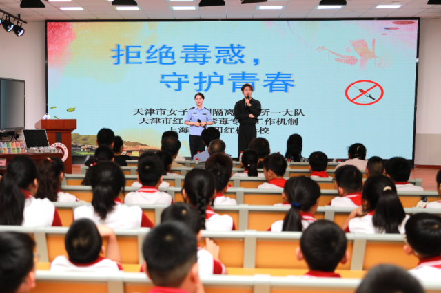 9月4日,天津各中小学迎来开学日。上海道小学办学集团天津市红桥学校报告厅气氛热烈,一场以禁毒为主题的“开学第一课”正式开讲。此次活动由天津市女子强制隔离戒毒所、天津市红桥区禁毒专项工作机制、上海道小学办学集团天津市红桥学校联合主办。天津海河传媒中心、天津海关缉私局、天津市戒毒管理局、红桥区委政法委、民盟红桥区委会、红桥区司法局、红桥区教育局、红桥区关工委等单位有关同志参加活动。