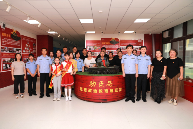 在现场“搜毒”环节,天津海关缉私局警察携两条明星缉毒犬登场,精准演示专业技能,直观展现缉毒犬在禁毒一线的“硬核战斗力”,让大家对禁毒工作有了更直观的认识,精彩表现赢得师生阵阵掌声,在与嘉宾、学生的亲密互动中将整场活动推向高潮。天津市女子强制隔离戒毒所警察还讲解仿真毒品模型,邀请学生借助VR设备“沉浸式”感受毒品危害。活动最后,到场领导与嘉宾共同参观了学校“功臣号”思想政治教育展览室,为此次活动定格重要时刻。
