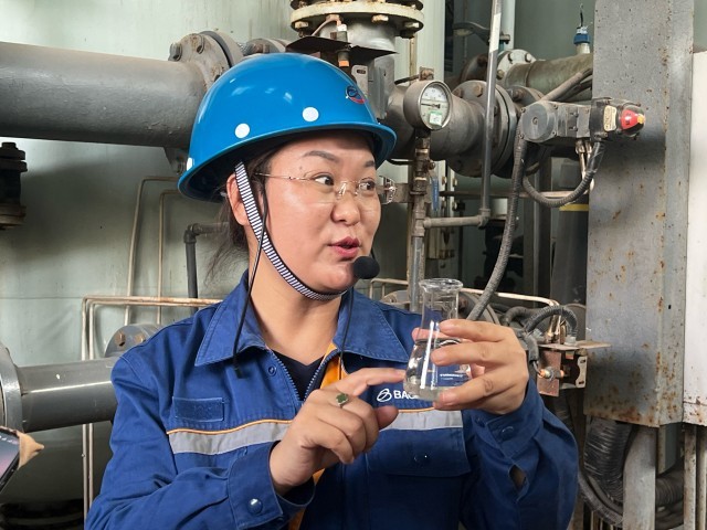 9月8日,新疆乌鲁木齐,新疆八一钢铁集团有限公司工作人员在介绍深度处理后可以饮用的净化水。中青报·中青网记者 赵安琪/摄