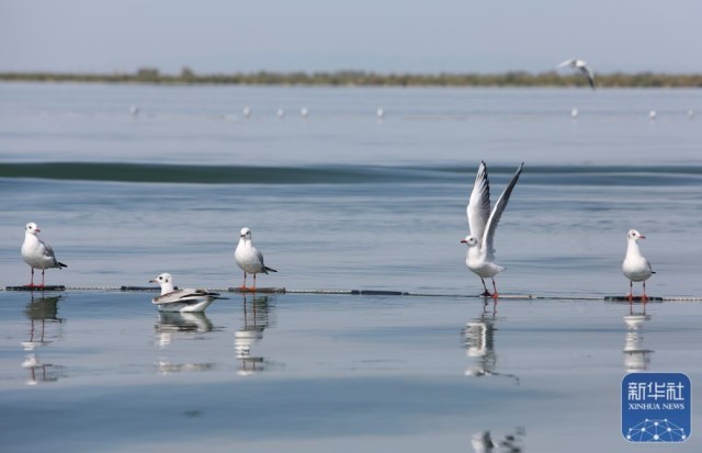 ↑ 9月8日,游客在新疆阿勒泰地区福海县乌伦古湖金沙滩景区游玩。
