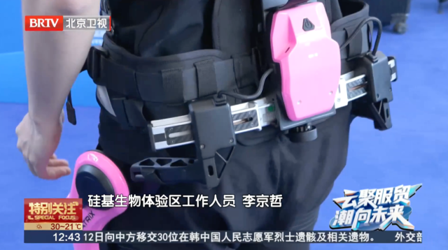 现场展示了可减轻记者工作负担的科技装备,如今年8月发售的髋关节助力外骨骼。据工作人员介绍,这款设备能帮助携带较重设备的记者在长时间行走或户外拍摄时节省约30%-40%的体力消耗。媒体公共工作区设计也充满未来感,被记者形容为“如同太空船的控制中心”,除提供高速网络和便捷设施外,还设置了多种科技互动装置。