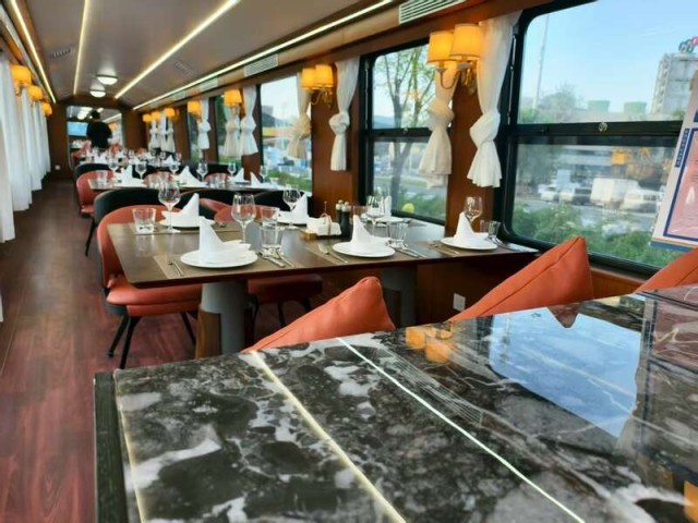距离“永定市集”步行约15分钟,约50米长的火车餐厅也已装点完毕,预计在本届服贸会期间开业。石泰集团火车餐厅项目负责人吴锡朋介绍,这家火车餐厅是“两园一河”项目的重点,依托首钢工业文化元素和沿河湿地美景,设置三节供饮食消费的车厢,包含正餐和咖啡厅。等轨道和站台搭建完毕后,小火车将在首钢园内多个站台停靠,满足不同地点消费者的饮食需求。