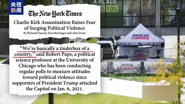 多家媒体发文指出,柯克遇袭身亡表明政治暴力在美国变得愈发普遍。而柯克之死又可能会让美国本已存在的分裂进一步激化,引发更多政治暴力事件。美国似乎已经陷入一种“死循环”。