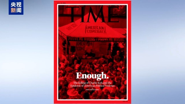 在美国《时代》杂志即将出版的最新一期封面上,查理·柯克遇袭身亡的现场被配上了“血色”滤镜。封面上写着一个大大的单词——“够了”。