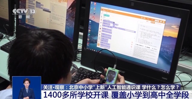 这个学期,北京1400多所中小学校将实现人工智能通识课程全覆盖,以全面提升学生人工智能素养为目标,从小学到高中不同阶段开设对应课程,帮助学生从“基本了解AI”到“合理使用AI”再到“创新应用AI”,在项目实践中锻炼创新思维和问题解决能力。