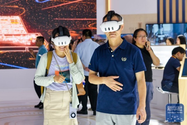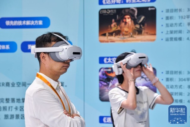 ↑ 9月12日,在北京首钢园,参展者在2025年服贸会文旅服务展馆北京市广电局展台体验、了解虚拟现实数智化文商旅解决方案。