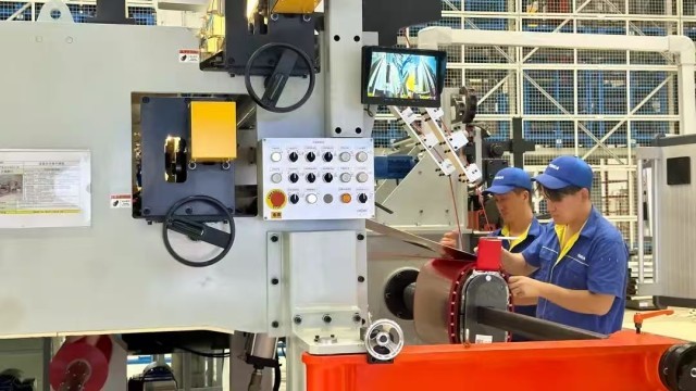 工作人员在特变电工智能电气装备科技产业园智能电气数字化车间进行线圈绕制作业。经济日报记者张倩摄