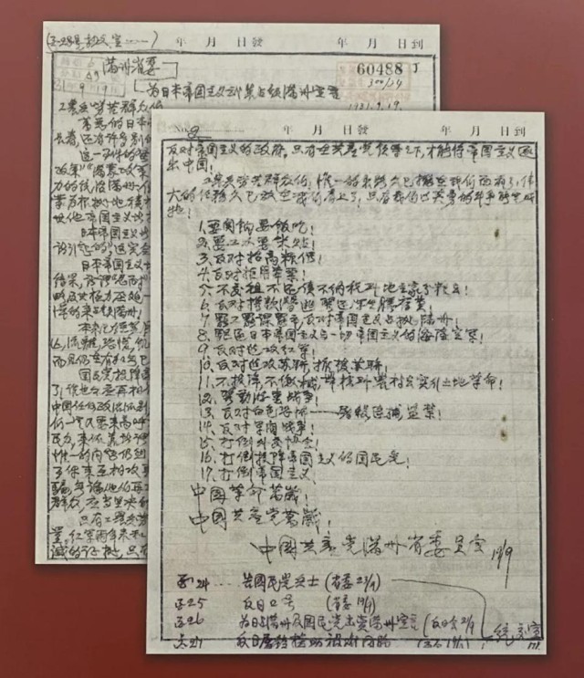 《中共满洲省委为日本帝国主义武装占领满洲宣言》手稿。人民网汤龙翻拍