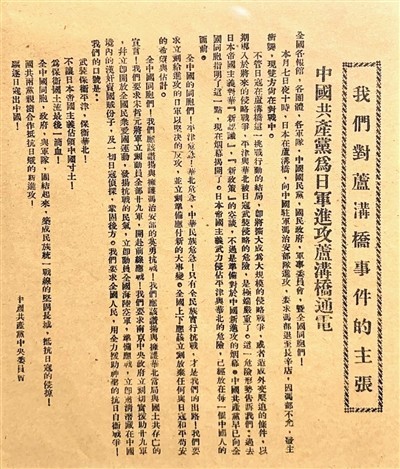 图为《中国共产党为日军进攻卢沟桥通电》。来源:人民日报