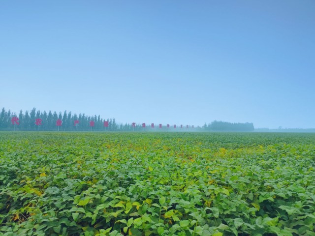 在山东省济宁市嘉祥县国家现代农业产业园大豆原种繁育基地,一片片大豆长势喜人。(受访者供图)