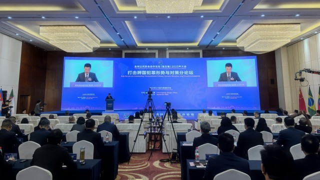 全球公共安全合作论坛(连云港)2025年大会打击跨国犯罪形势与对策分论坛现场。公安部新闻宣传局供图