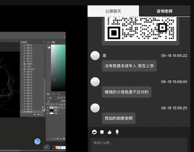 中青报·中青网记者跟随“离职博主”引导参与的一堂插画免费课程,教师引导交费报名后续学习时,有人解释无法立即交费的理由是“我是未成年人,我在上学”。图片截取自网络