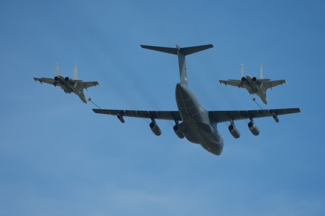 歼-16与运油-20A进行编队飞行。中青报·中青网记者 王裴楠/摄