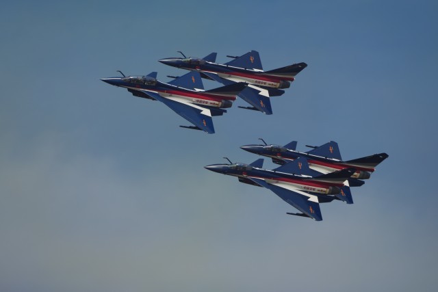 “八一”飞行表演队展示密集编队飞行。中青报·中青网记者 王裴楠/摄