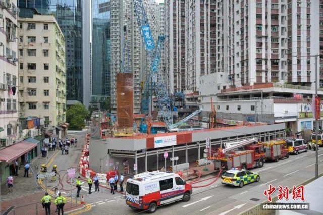 记者当天下午在该工地附近看到,多辆警车和消防车在场戒备,现场拉起警戒线,周边道路被封锁。