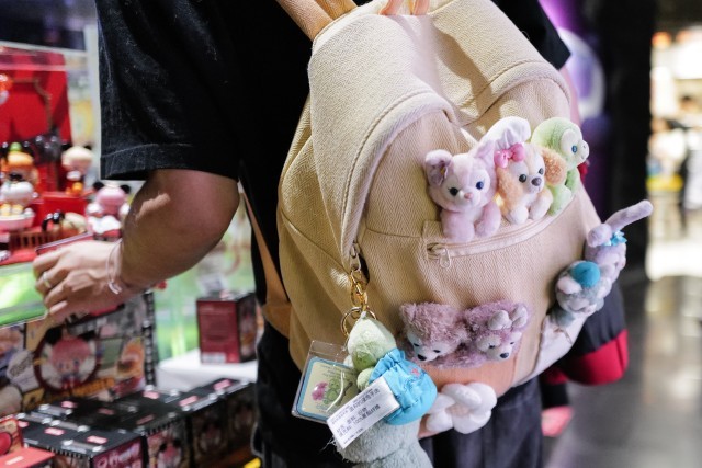 9月18日,北京一家潮玩店,一名男生的背包。中青报·中青网记者 赵迪/摄