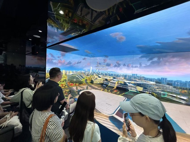 观众在江苏省太仓市太仓中德合作展示中心中观看中德中小企业合作示范区的宣传片。中青报·中青网记者 贾骥业/摄