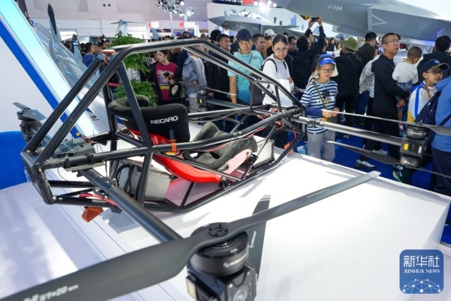 ↑ 9月20日,参观者在现场参观载人多旋翼飞行器。
