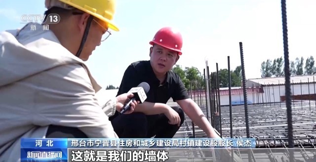邢台市宁晋县住房和城乡建设局村镇建设股股长 侯杰:这就是我们的墙体,横向是25公分,竖向是45公分,然后铺设钢筋,浇筑混凝土。
