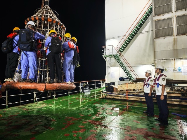 台风来临前,海事人员开展人员转运。刘海机/摄