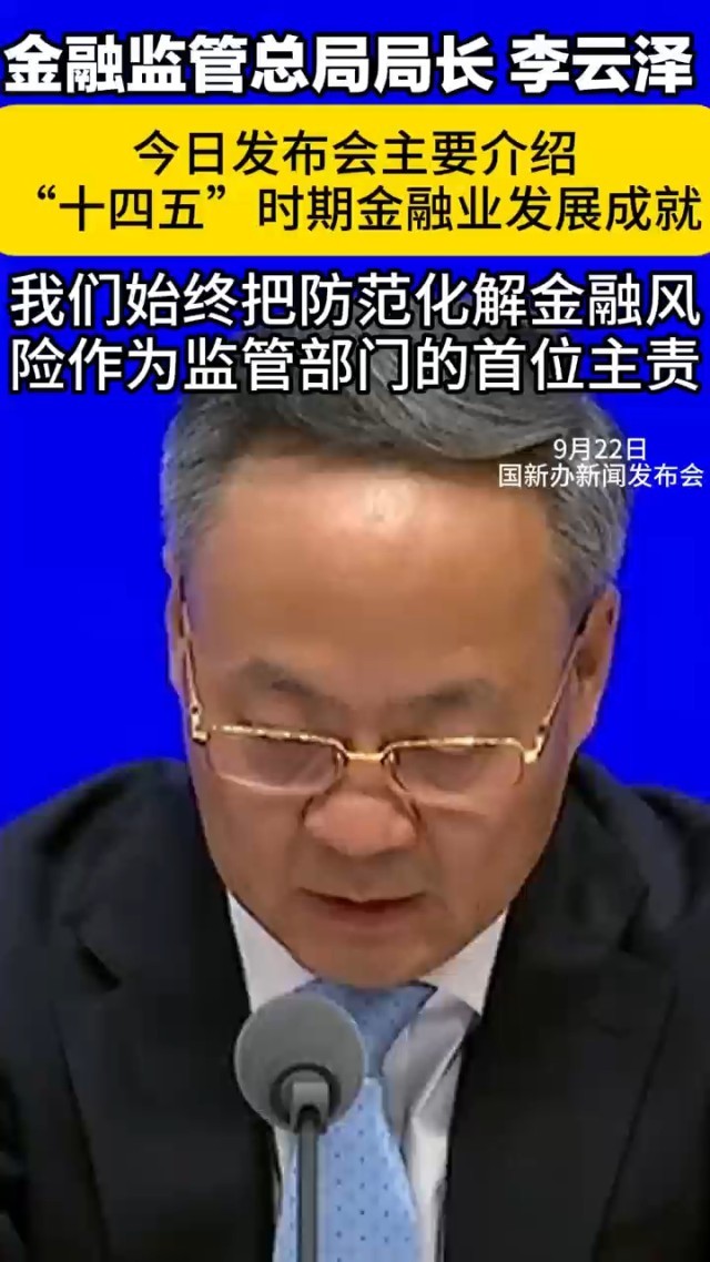 9月22日,国务院新闻办公室举行“高质量完成‘十四五’规划”系列主题新闻发布会。发布会上,金融监管总局局长李云泽表示:“‘十四五’时期,我们始终把防范化解金融风险作为监管部门的首位主责,把稳妥处置中小金融机构风险作为重中之重。”(中青报·中青网见习记者卢健 刘佳佳 记者朱彩云)