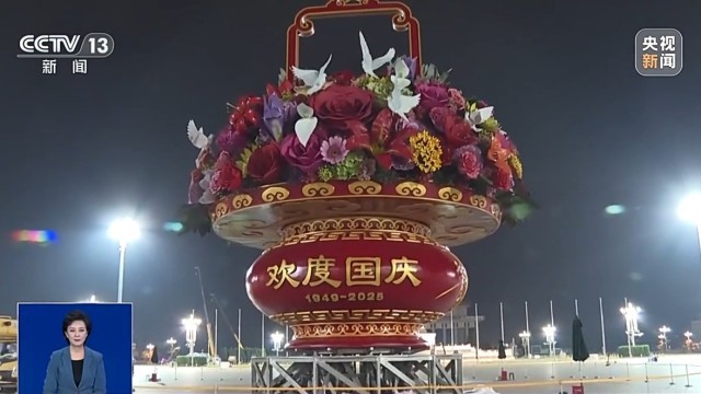 22日凌晨,天安门广场中心的“祝福祖国”巨型花篮吊装完成,篮盘与篮肚精准合龙。巨型花篮是如何组装的?今年的花篮有哪些新亮点?