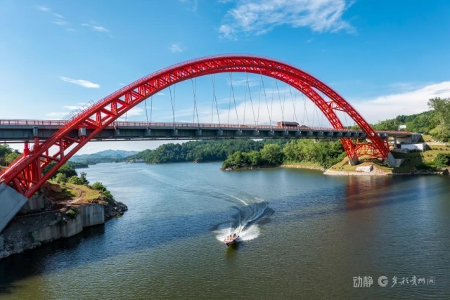 位于贵阳市清镇市,以其独特的“提篮”式设计跨越美丽的红枫湖,大桥全长269.6米,主跨达180米。在建设过程中,秉承生态建桥的理念,综合考虑旧桥拆除和新桥重建,首创了“利用旧桥建新拱,利用新拱拆旧桥”的原桥位拆、建一体化方法,实现了“水源零污染、景区零干扰、景观新地标”,形成“一湖三桥”交相辉映的生态画卷,成为山区桥梁改建的典范项目。