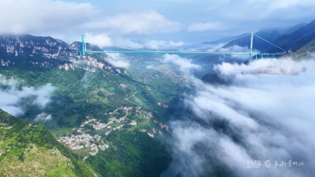 位于安顺市关岭布依族苗族自治县与黔西南布依族苗族自治州贞丰县交界处,是贵州六安高速公路的控制性工程。大桥全长2890米,主桥跨径1420米成就“山区第一跨”,625米的桥梁高度,刷新“世界第一高”。大桥建成通车后,两岸通行时间将由过去的2小时缩短至2分钟跨越。花江峡谷大桥以首次在主缆内部植入传感系统、首创采用"上下水平稳定板+中央稳定板"抗风措施等多项创新技术刷新世界纪录,同时,以打造"超级工程+全域旅游"的桥旅融合新模式,拓展了桥梁功能边界,为交通基础设施赋能区域发展提供了"贵州样板"。
