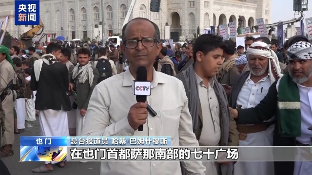 总台报道员 哈桑·巴姆什穆斯:在也门首都萨那南部的七十广场,人们正举行大规模游行,呼吁继续动员,应对可能到来的进一步冲突。