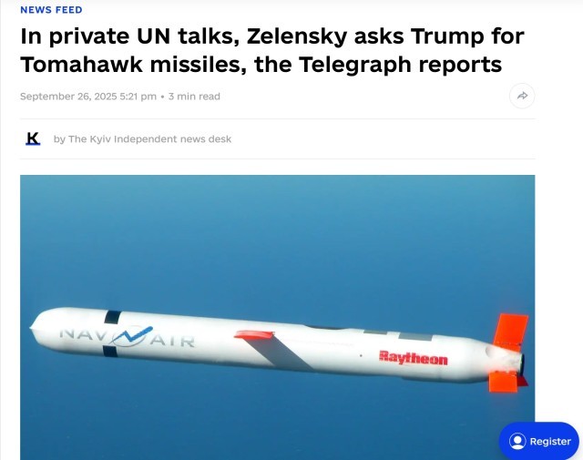 中国青年报客户端北京9月28日电 (中青报·中青网记者 张昊天)9月下旬,美国对俄乌冲突的立场出现新动向。外媒近日报道称,在纽约联合国大会期间举行的一次闭门会议上,乌克兰总统泽连斯基再度向美方索要“战斧”远程巡航导弹,宣称将借此威胁俄罗斯腹地。美国总统特朗普没有当场表态同意,但“似乎愿意考虑乌方这一请求”。