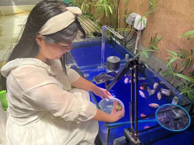 “现在来买我们金鱼的客户需求很多元,比如像‘云养鱼’,”徐凡介绍,就是客户购买金鱼后直接留在渔场里寄养,只通过线上平台观赏,“客户就是通过观赏金鱼这种美,获得一种情绪价值。”