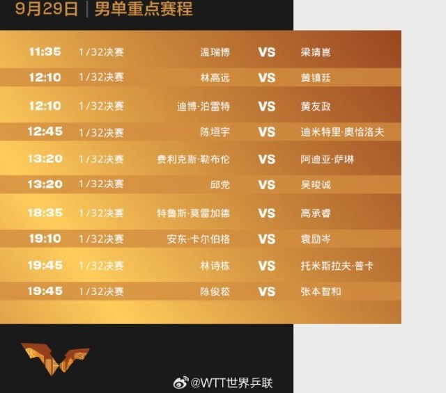 WTT中国大满贯今日赛程公布! 王曼昱、林诗栋将登场