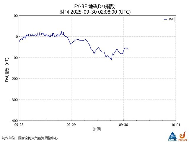 风云三号E星的天基地磁探测数据显示,中低纬度区域的Dst指数一度下探到超过-100nT。