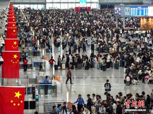 10月1日,陕西西安北站内人头攒动。当日,西安铁路部门迎来假期客流高峰,当天预计发送旅客83.5万人次,同比增长9.6%。 刘盼利 摄