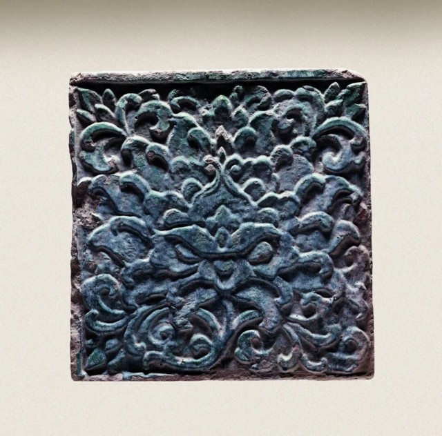 此外,宁夏博物馆镇馆之宝的“鎏金铜牛”(此次展出为复制品),以栩栩如生的造型和通体鎏金的精湛工艺,展现了西夏高超的金属铸造水平;残损却意义非凡的“西夏文残碑”,是西夏创造自己文字又大量翻译汉文典籍,以“夏译汉籍”方式积极吸收中原文化的直接证据;小巧的“彩绘擦擦”(模制小泥佛塔),则是宋夏时期藏传佛教在宁夏地区广泛流传的物证,反映了藏汉文化的完美融合;而威严的“灰陶鸱吻”与华美的“绿琉璃花纹方砖”,更是将中原地区的建筑制度与审美情趣,原原本本地移植到了贺兰山脚下。