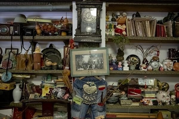 8月21日,北京,一家胡同里的书店一角陈列着许多用于出售的老物件。这也是很多人对二手商品的传统印象。姚沐含/摄