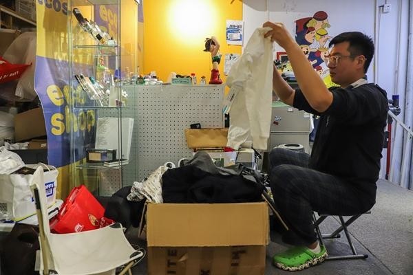 8月28日,北京,一家二手商店的95后店长吉琳正在清点客人送过来寄卖的二手物品。姚沐含/摄