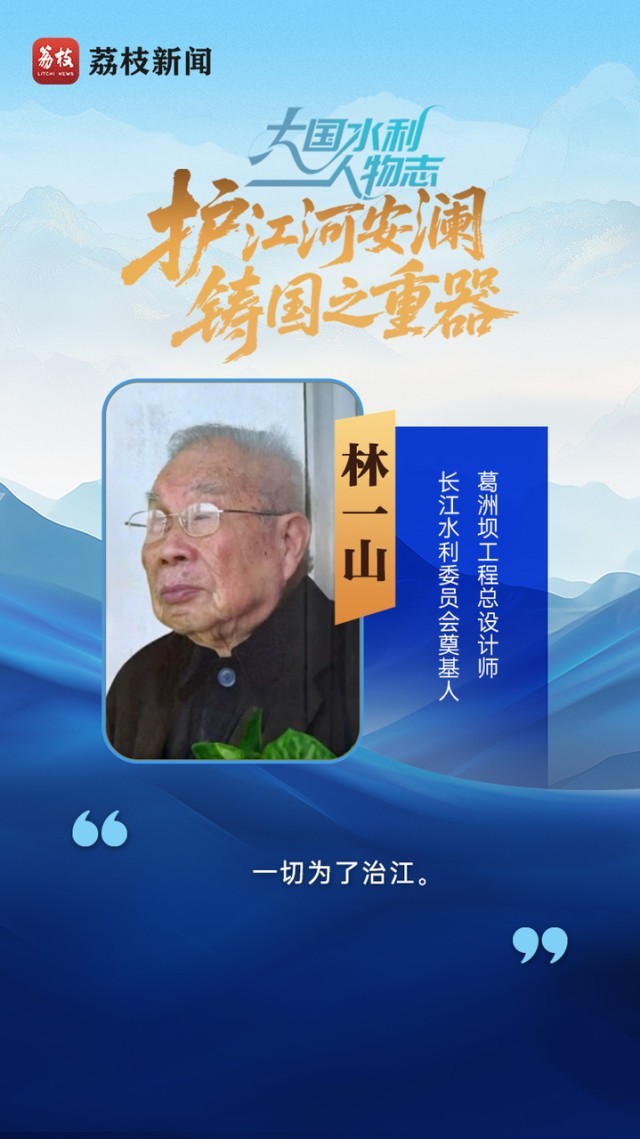 林一山,长江流域综合利用规划的首倡者和重要奠基人。他创造性提出三阶段治江战略:一阶段培修加固堤防,发挥防洪作用;二阶段兴建分蓄洪区,减少洪灾损失;三阶段兴建梯级水库,拦洪蓄水,综合利用,从根本上解除洪水威胁。从荆江大堤整险加固,到荆江、杜家台等分蓄洪区建成,再到丹江口、葛洲坝等水利枢纽工程。40多年的治江实践中,“长江王”的蓝图渐渐变为现实。2007年,林一山去世,享年96岁。