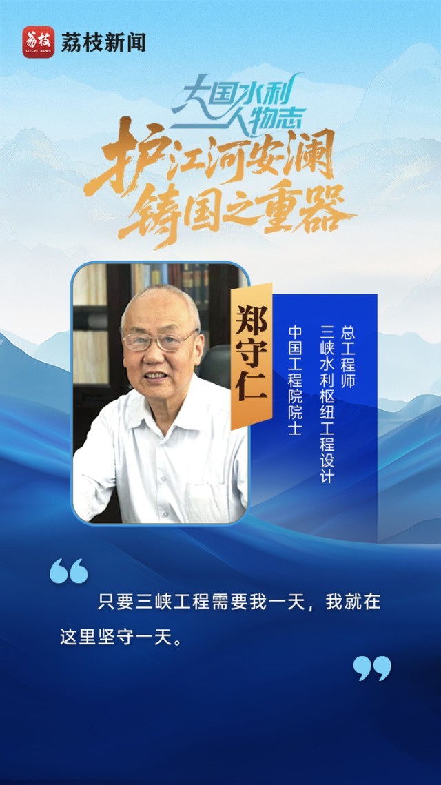 郑守仁是我国著名的水利水电工程专家。他先后参与了陆水水库、乌江渡、葛洲坝、三峡等众多工程,一生都与水利结缘。1963年,23岁的郑守仁从华东水利学院(今河海大学)毕业工作,至80岁高龄,57年如一日坚守工地,被称为“工地院士”。他带领团队,三次成功解决截流长江的世界难题。他作为总设计师的三峡工程,有20多项经济技术指标名列“世界之最”。据不完全统计,仅三峡主体工程就节约投资3亿元。2020年7月,郑守仁因病逝世,享年81岁。