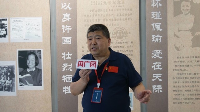 老专家志愿讲解团成员冯涛在讲述“两弹一星”功勋郭永怀事迹时动情落泪(央广网发 张文 摄)