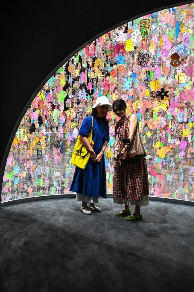9月12日,游客在塱头村春阳台艺文中心的艺术展览打卡拍照。