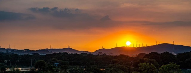 这是9月12日在塱头村春阳台艺文中心拍摄的落日。