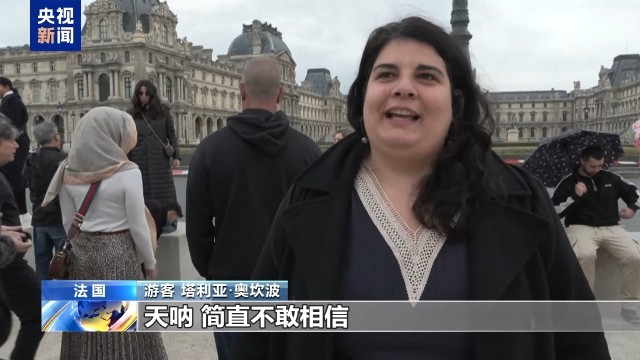 游客 塔利亚·奥坎波:就像一场好莱坞电影,我很震惊。天呐,简直不敢相信,这也太疯狂了吧。这件事情值得记在历史里,我永远不会忘记。我本来打算去卢浮宫,但却因为发生了抢劫案没去成,真的难以置信。